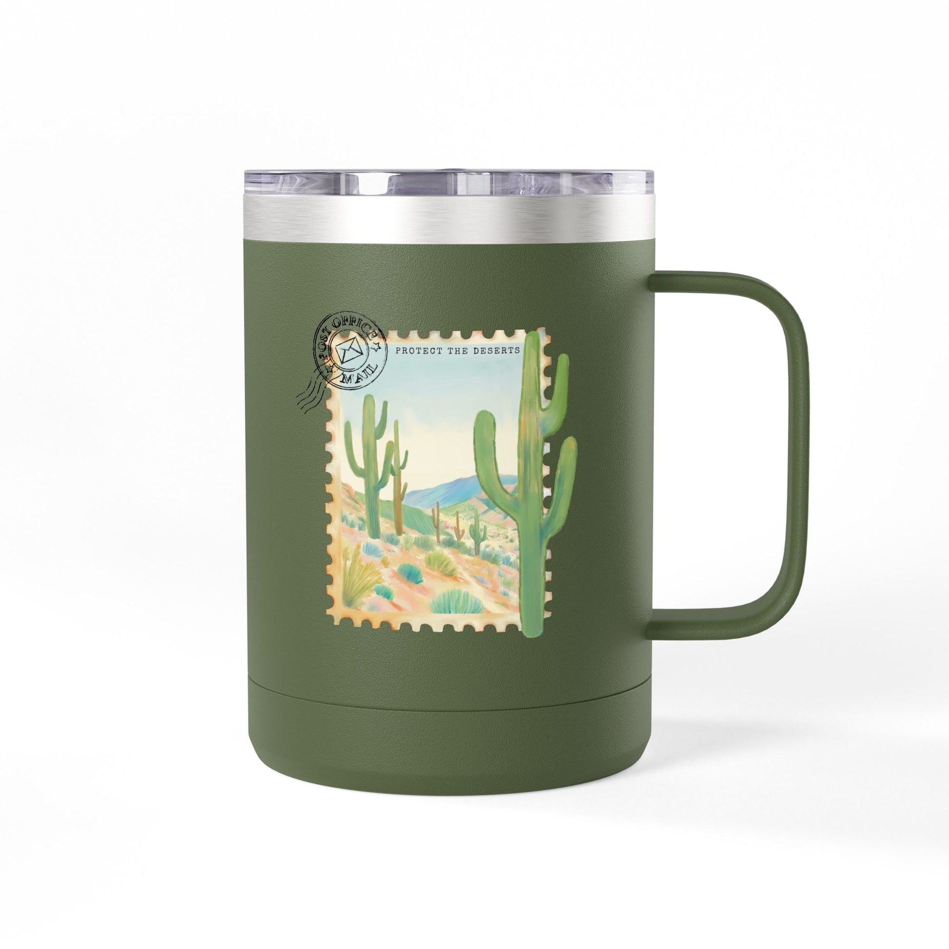 Protect the Desert mug tumbler is perfect for keeping your coffee hot or your iced tea cold. The design evokes a sense of adventure and nature, making it ideal for outdoor enthusiasts and nature lovers. This tumbler is great for enjoying your favorite beverage while on a hike, camping trip, or just relaxing at home. It's a thoughtful gift for birthdays, holidays, or any special occasion.