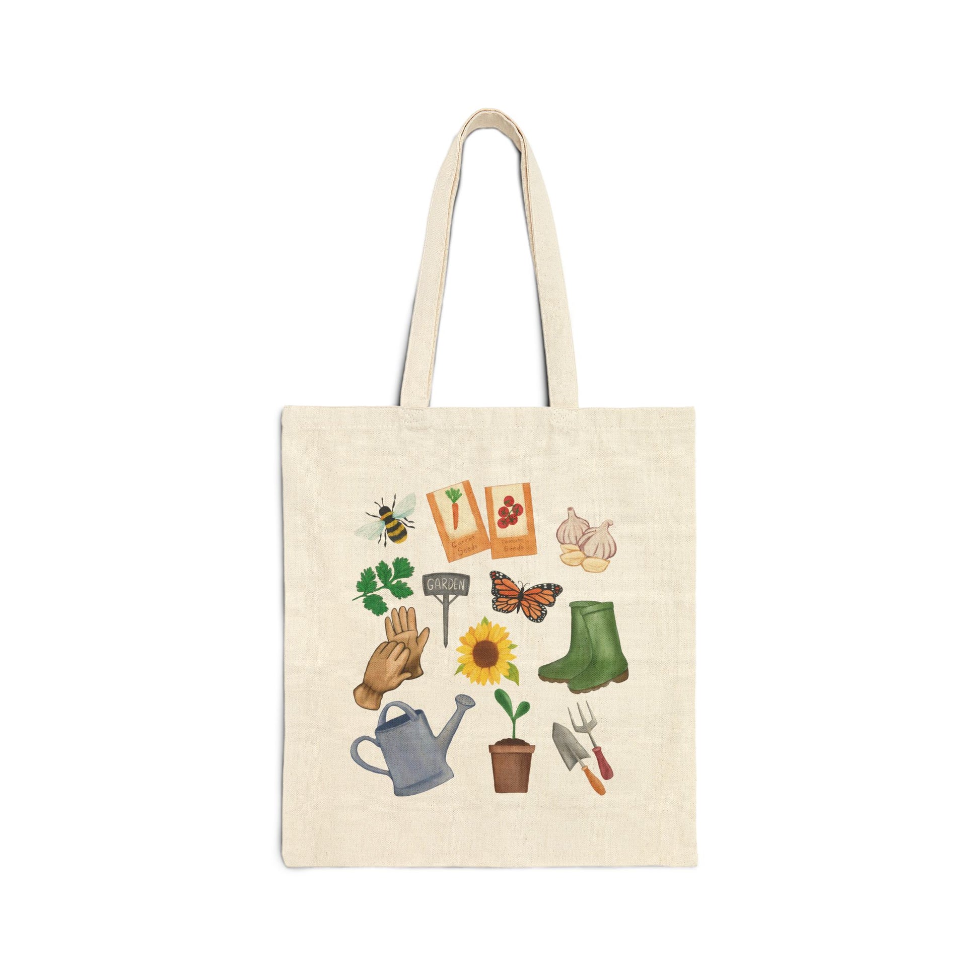 This garden tote bag exudes a fresh and vibrant atmosphere, perfect for carrying tools, plant supplies, or groceries. Ideal for gardeners, nature lovers, and eco-conscious individuals. Relevant for Earth Day, gardening season, and farmer's markets.