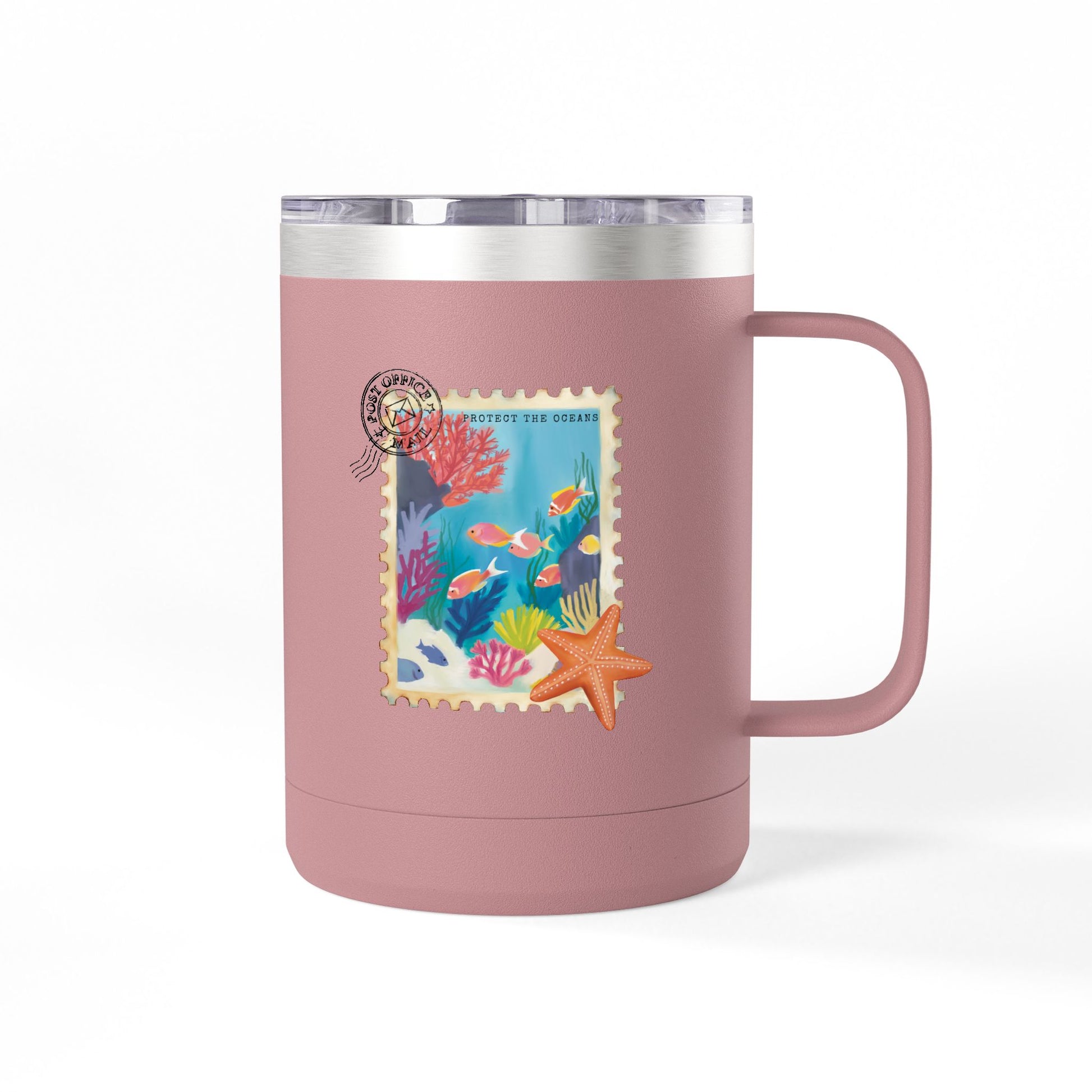 Stay eco-friendly and stylish with this protect the oceans coffee mug tumbler. Perfect for coffee or tea lovers who want to make a positive impact on the environment. Ideal for use at home, work, or on the go. Great for Earth Day, World Oceans Day, and everyday use.